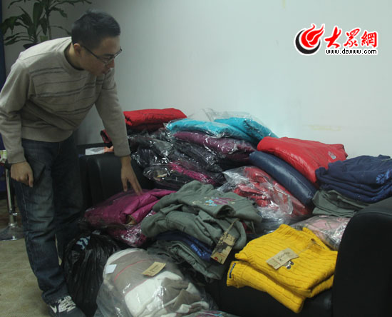 今天首批“百家衣”將送到濟南仲宮鎮(zhèn)穆家小學,圖為大眾網(wǎng)記者在清點捐贈的衣物