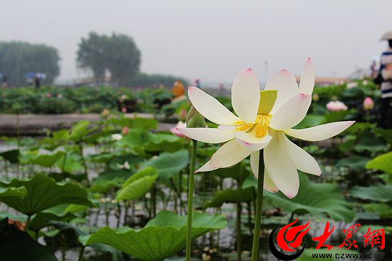 (記者們各種裝備齊上陣 爭(zhēng)相拍攝雨后荷花)