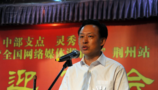 [提要] 23日中午,參加第三屆網(wǎng)絡(luò)媒體湖北行的編輯記者一行由武漢到達(dá)“九省通衢”--荊州,荊州市委書記李新華在荊州賓館市委市政府的媒體見面會上對采訪團(tuán)的到來表示熱烈歡迎并向采訪團(tuán)介紹了荊州的概況和未來發(fā)展方向,荊州市委常委、市人大常委會主任、市委宣傳部長易法新主持了見面會。