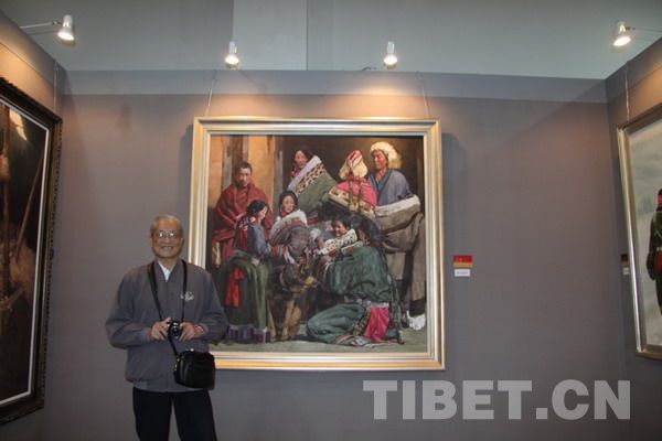 11月20日,首屆“和美西藏”美術作品展上海站的展館又迎來一個溫馨的周末。一大早,一位學者模樣的慈祥老人獨自緩步踱入展廳。這位老先生目光矍鑠,面色紅潤,花白的頭發整齊地梳向腦后,腰桿筆直,既有仙風道骨之韻又給人一種鄰家阿伯的自然親切之感。