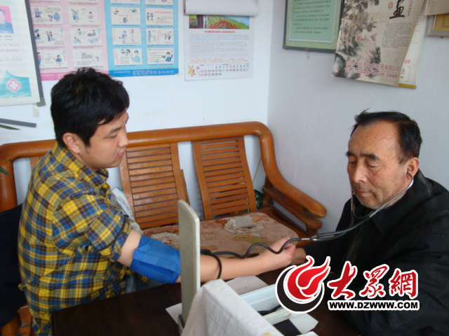 衛(wèi)生室老醫(yī)生為記者量血壓。