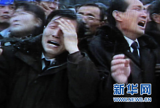 這張12月28日的電視畫面顯示,朝鮮民眾在平壤參加朝鮮最高領(lǐng)導(dǎo)人金正日遺體告別儀式時(shí)慟哭。 新華社記者 殷博古 攝