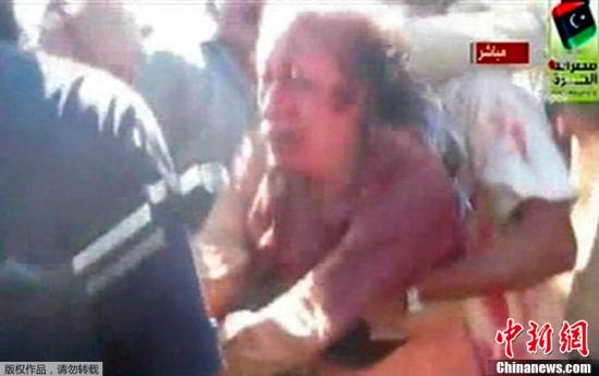 10月20日,一段視頻截圖顯示,卡扎菲被利比亞過渡委武裝人員從一輛卡車上推下來,滿臉是血。利比亞“全國過渡委員會”執行委員會主席賈布里勒20日在新聞發布會上證實,卡扎菲當天在蘇爾特傷重身亡。