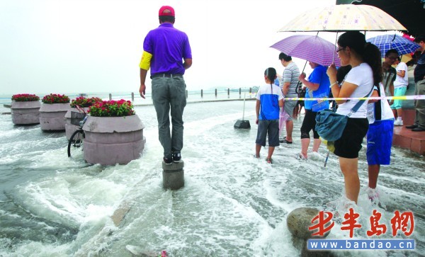 [提要] 8月7日,島城海邊掀起巨浪,沿海景區紛紛拉起警戒線,防止因海浪發生意外。在防臺風期間,旅行社不得組織團隊到沿海一線特別是濱海步行道、棧橋、海水浴場等沿海地帶游覽。市旅游部門提醒,市民和游客請適當調整行程,旅行社則不要再安排團隊海上游覽。