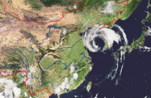 8日00:30衛星云圖顯示的臺風“梅花”位置