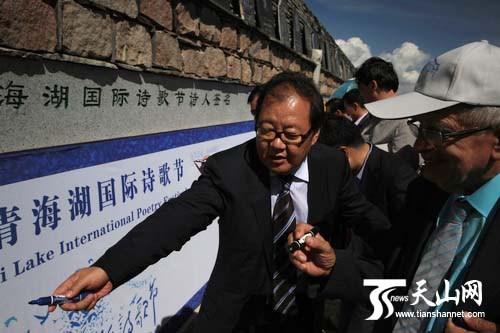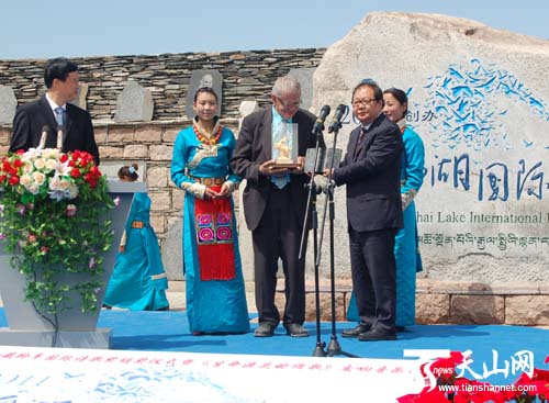 天山網(wǎng)青海訊(記者 薛靜 攝影報道)8月9日,第二屆青海湖國際詩歌節(jié)金藏羚羊頒獎儀式暨《生命源頭的頌歌》交響音樂會在美麗的青海湖畔詩歌廣場舉行。金藏羚羊國際詩歌獎獲得者為立陶宛詩人托馬斯?溫茨洛瓦,第三屆青海湖國際詩歌節(jié)組委會主任、青海省委常委、宣傳部長吉狄馬為他頒獎。