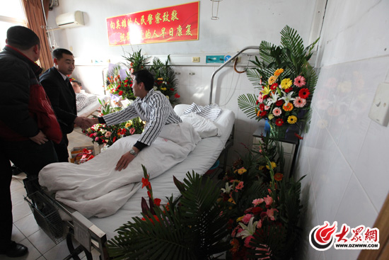 大眾網(wǎng)泰安1月6日訊(記者 曹亮 盛堃)今天上午,解放軍88醫(yī)院兩位受傷交警的病房接連不斷有前來看望的同事和市民。大眾網(wǎng)記者與兩位英雄進行了短暫的交談,正是他倆的最后一撞,才迫使兩名歹徒在搶劫第四輛車后就擒。