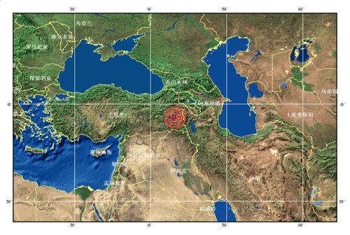 據中國地震臺網測定,北京時間2011年10月24日4時45分在土耳其(北緯38.6,東經43.2)發生6.0級地震,震源深度10公里。