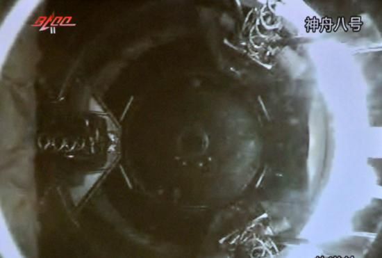 神舟八號與天宮一號對接環接觸。(視頻截圖)