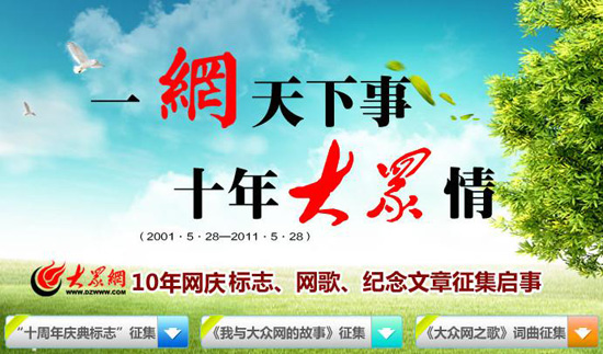 重獎征集《大眾網(wǎng)之歌》、10周年慶典標志