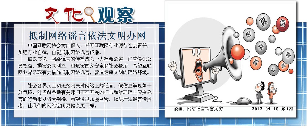 [提要] 當前各地有關部門正在開展打擊和治理網上傳播謠言的行動,法律工作者認為,互聯網上發表言論同現實生活中發表言論在法律責任的承擔上是一致的,網絡雖然是一個虛擬世界,但在這個虛擬世界內散布謠言觸犯了法律,也要承擔相應的法律責任。