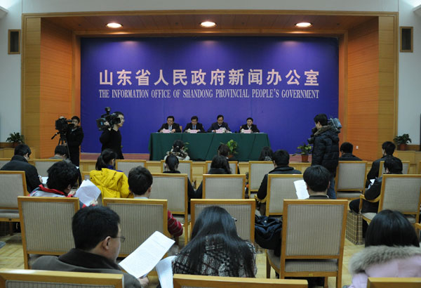 中共山東省委宣傳部副部長、山東省人民政府新聞發言人劉保聚主持新聞發布會