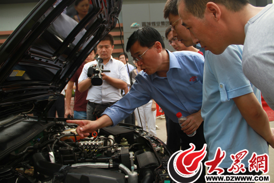 晉煤工作人員在為記者講解汽、油兩用汽車(chē)