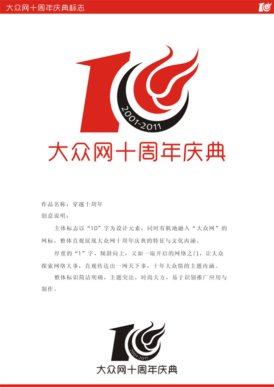 [提要] 主體標志以“10”字為設計元素,同時有機地融入“大眾網”的網標,整體直觀展現大眾網十周年慶典的特征與文化內涵。