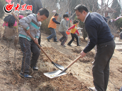 大眾網濟南312訊(記者 隋喬)“給我一棵給我一棵!”“你知道這個樹的名字嗎?老師早就教給我們怎樣植樹了。”今天上午,濟南小學生和家長組成近千人的植樹隊伍,來到濟南市紅葉谷,參加“大眾網十周年·十萬網友共植愛心樹”活動。來自濟南市緯二路小學、濟南市舜耕路小學的小學生們,在植樹的認真勁兒上絲毫不輸旁人。