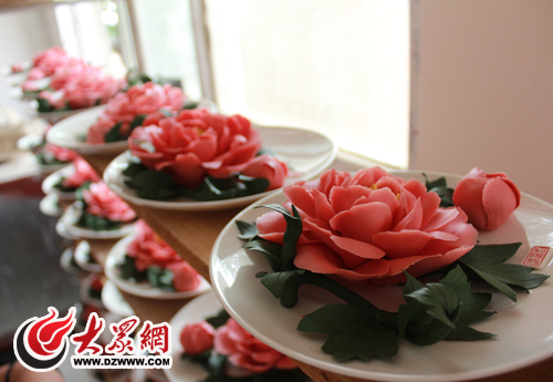 成品洛陽牡丹瓷看上去與真正的牡丹花無異