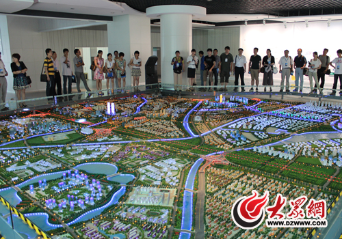 采訪團(tuán)成員參觀鄭東新區(qū)規(guī)劃模型