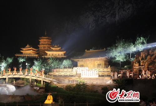 大眾網(wǎng)登封7月12日訊(見(jiàn)習(xí)記者 馬鑫)光影交錯(cuò),音畫(huà)合一,在數(shù)百僧侶的現(xiàn)場(chǎng)唱誦下,在春夏秋冬的景觀(guān)變化中,直指心性的佛樂(lè)禪音,合成了中岳嵩山輝煌的交響。晚上8:00“印象河南”采訪(fǎng)團(tuán)一行來(lái)到嵩山腳下,欣賞了由譚盾擔(dān)任藝術(shù)總監(jiān)和音樂(lè)原創(chuàng)的《禪宗少林·音樂(lè)大典》大型文化演出。