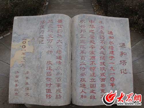 據介紹,這座水塔高約40米,名為“通和塔”,原為津浦鐵路機務段的工業用水水塔,始建于1910年,距今已經100余年了。這座水塔當年是由德國工程師司馬門設計、工程師哈爾曼等人建造的。這座水塔的功能與其他地方的水塔略有區別,這座水塔主要是為當時的蒸汽機車加水的。