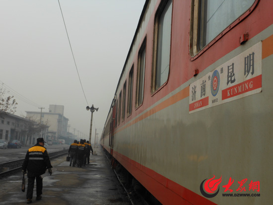 上午9點30分,檢修乙班的“鋼鐵醫生”們開始對濟南到昆明的火車進行檢修