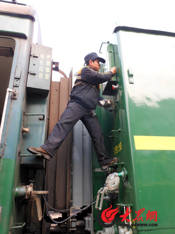 “火車能晚點,我們絕對不能,人等車可以,車等人可不行!”檢修乙班的班長王偉告訴記者,不管火車幾點到,他們都是每天早晨8點準時到單位與上一個班次的同事交接,然后對每天的14列圖定列車、1列臨時客車進行檢修。“人的時間跟著車定,如果最后一班列車晚點一個小時,我們就得延長一個小時。”王偉介紹說,一般情況下,檢修工要從每天早上8點工作到凌晨兩三點,然后到第二天8點交接工作,下班回家。在這16人中有5位外地人,一位來自淄博,兩位來自曲阜,兩位來自兗州,對他們5個來說,每天早晨8點下班后就要坐火車回家,上班的時候再坐火車來濟南,周而復始,“很多時候回家的車上沒有做,就得站一路。”