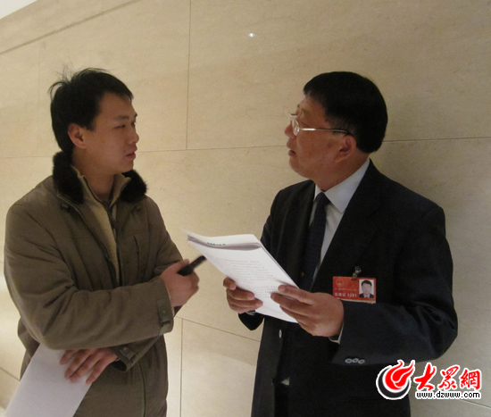 全國人大代表、山東登海種業(yè)股份有限公司董事長李登海在山東團分組審議間隙接受大眾網(wǎng)記者采訪。 特派記者 李冉 攝