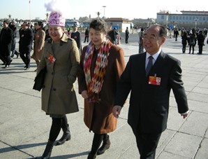 全國人大代表在大會堂前接受采訪