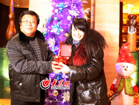 隨后,在酒店的一棵圣誕樹下,西維亞手捧這個特別的禮物,執(zhí)意要與陪同她的天橋區(qū)政府的工作人員合影留念。她說,這是最好的圣誕節(jié)禮物,請大家?guī)退涗涍@美好的時刻。