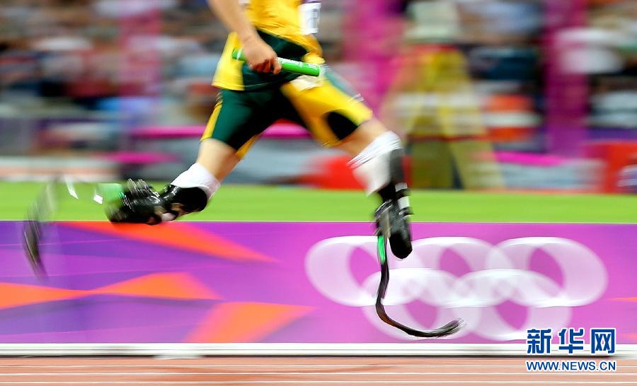 8月10日,“刀鋒戰士”南非選手皮斯托瑞斯在比賽中。當日,在2012年倫敦奧運會田徑男子4X400米決賽中,南非隊以3分03秒46的成績獲得第八名。新華社記者殷剛攝