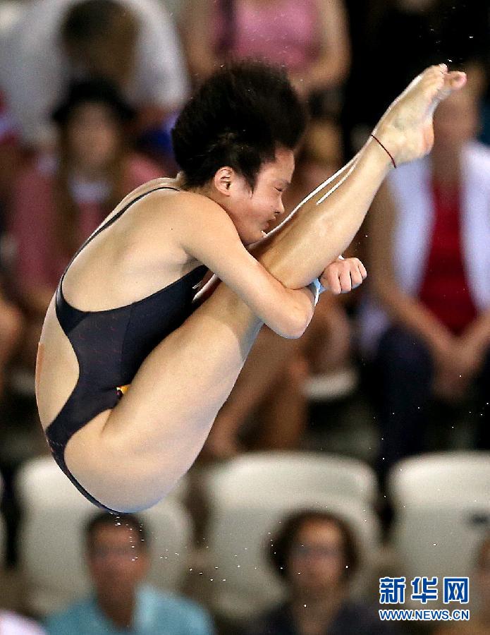 8月9日,中國選手陳若琳在比賽中。當(dāng)日,在倫敦奧運(yùn)會(huì)女子10米跳臺(tái)決賽中,陳若琳奪得冠軍。 新華社記者凡軍攝