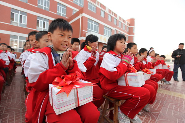 孩子們懷抱愛心書。