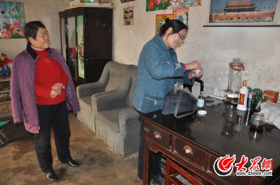 路過西桃村,孫鳳蓮來到張翠云家詢問病情,剛進門,屋里的人便說:“哎呀,來了俺那救命恩人”。不是親眼所見,還真感受不到患者對孫鳳蓮的感激之情。張翠云說:“去年十月我腿腫了,拄著拐棍,疼得不能走了,我就打電話讓她上來給我打針,上來打了八天針,她在這看了八天,晚上看到九點就是九點,十點就是十點,得給我拔了針,她才回家。我這一輩子都不會忘了孫鳳蓮”。