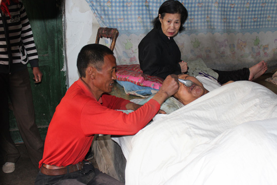 人們常說:“久臥病床心意灰。”又有人說:“久病不愈性怪僻。”這些話往往會在大病久臥之人的身上體現,脾氣變壞或性格古怪。但對癱瘓病人來說最怕的還是生褥瘡,牛國昌每隔三小時就為父親翻一次身,不厭其煩地為其翻身、擦身、刷牙、洗臉、喂飯、端屎尿、換被褥、按摩手腳、洗臟衣物,一絲不茍地照料著父母的生活。鄉親們都說:“方圓百里也找不著國昌這樣的好孩子啊”。為方便照顧父母,婚后他和妻了一直過著“分居”生活,堅持睡在父母的房間。半夜父母尿床了,他趕緊起來給他換床墊;看父母難受,趕緊起來喂水喂藥。為了父母能夠睡個安穩覺,他平均每晚要起床查看三四次。還要定時定點地服侍父母吃藥。父母要照顧,一家人的生活都靠他,農活一樣都不能落下,就這樣,他每天凌晨4時就要起床打理,這么多年來,他睡囫圇覺的時候很少。沉重的生活壓力使得這個中年漢子臉上布滿了滄桑,可是他一直咬牙堅持著。為了減輕生活負擔,大女兒也放棄了學業,這是牛國昌心里最大的痛,可是家里的經濟條件實在支撐不起。