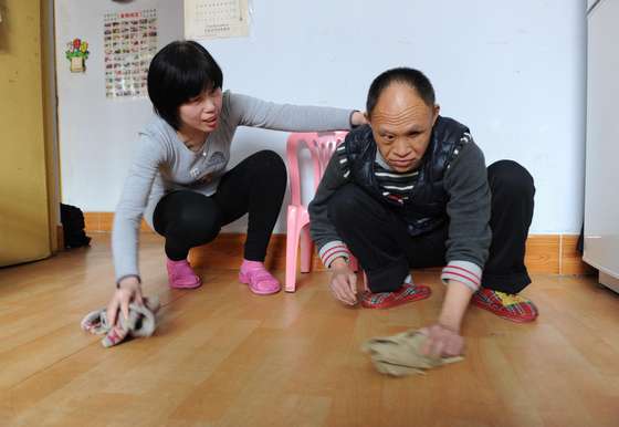 患有智障的大伯哥經(jīng)常搶著干活,以此表達自己的感恩之情。