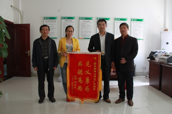 “救命之恩,永生難忘。如果沒有你的出手相救,我父親和侄子的命可能就沒了,我們一家人不知道該怎么面對今后的生活……”2016年4月14日,清泉街道西街村村民張女士經過多方打聽找到煙草專賣局(營銷部)石廣寧,一邊哽咽著表達感激之情,一邊將印有“見義勇為,品德高尚”的錦旗送到石廣寧手中。至此,同事才知道石廣寧在清泉河救起爺孫倆且不留名的事,紛紛豎起大拇指。