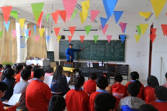 焦老師來了以后,很快便成為了祥斌中學孩子們最為期待的大朋友,一個個孩子猶如久旱的樹苗得到滋潤,一到音樂課,大家都像過節一樣興奮;課程一結束,學生又都不舍得離去,“他就像我們的爺爺,有一種很親切的感覺,因為有焦老師音樂課,我覺得上學變的很有趣。”孩子們開心的告訴我。