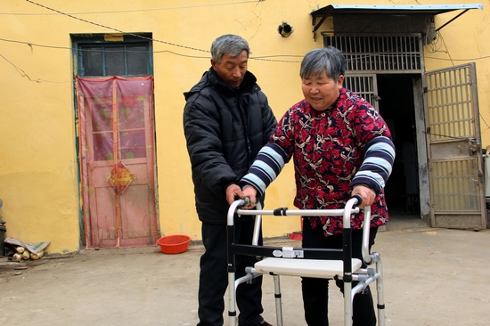“干著活,還要看著時間!蓖踝髁琳f,他一個多小時就得回去看看母親和老伴。晚上也沒有睡過安穩覺,因為半夜還要幫老伴翻身三四次。即便這樣,他也從來沒有過怨言,F在他和老伴之間有了一個默契:一個眼神、一聲呻吟,他就就知道妻子需要什么、哪里不舒服。妻子看著他每天拖著傷痛的身體日夜操勞,心疼的掉眼淚,認為自己拖累了他,想一死了之,他總是握著妻子的手說,只要一家人在一起,苦點累點都能受,最受不了的,是你走了,留下我一個人。6年多的操勞,妻子的身體稍有了起色,可以走動了。他欣慰的說:“只希望我們在一起的時間再多一點。”