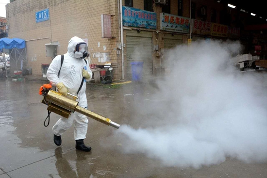 市中藍天應急救援隊隊長馮琦馳援湖北武漢,赴疫區一線開展消殺作業。