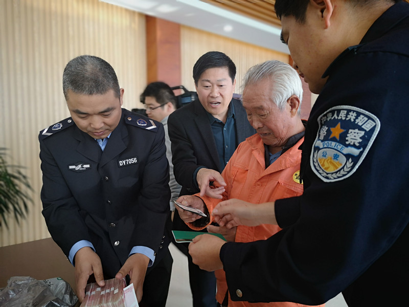 在民警的幫助下,11月12日上午10時許,失主老先生幾經周折,顫顫巍巍地來到了勝利派出所。老先生焦急地述說著當天的經過。經過核實,民警確認了駕駛員燕增鵬撿到的袋子,正是這位八旬老人所丟。民警為老人清點了錢款,連同袋子里的物品一并整理好,送還到了老人手中。當得知錢是由燕增鵬撿到并送到派出所時,老人激動地握著燕增鵬的手,嘴里不停地說著“謝謝,謝謝”。