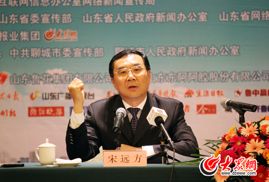聊城市委書記、市人大常委會主任宋遠方出席科學(xué)發(fā)展新山東——“魯花杯”第八屆中國網(wǎng)絡(luò)媒體山東行聊城市新聞發(fā)布會。(盛堃 攝影)