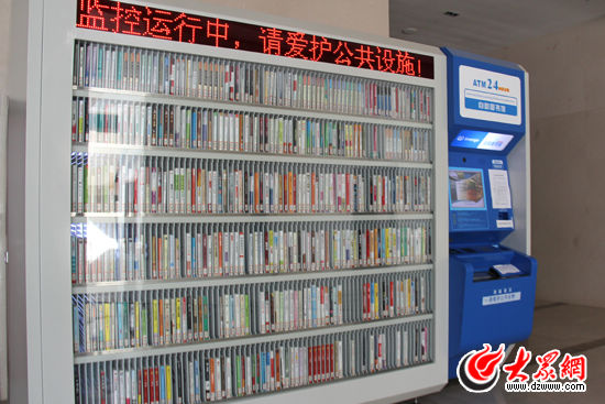 位于文登市民文化中心的24小時(shí)自助借書器。(馬鑫 攝)