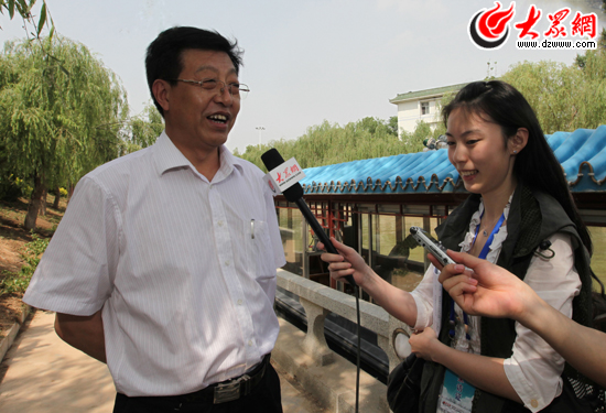 聊城市委常委、宣傳部長趙慶忠接受采訪團記者采訪,并介紹了聊城市在“水城”建設方面所做的工作。(盛堃 攝影)