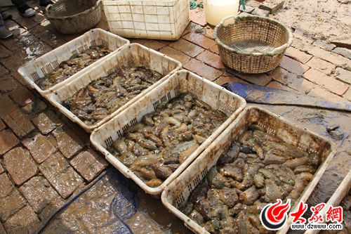 剛剛捕撈上來的海參還要送到加工廠進(jìn)行進(jìn)一步加工。(馬鑫 攝)