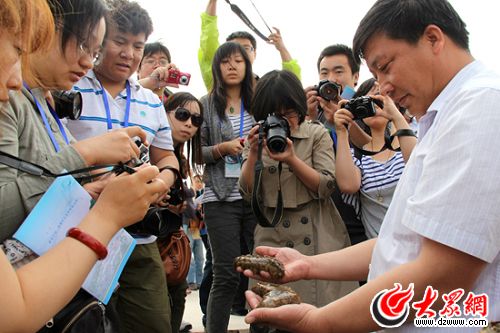 大眾網(wǎng)東營5月15日訊(記者 馬鑫)15日上午,科學(xué)發(fā)展新山東——“魯花杯”第八屆網(wǎng)絡(luò)媒體山東行東線采訪團(tuán)來到東營現(xiàn)代生態(tài)漁業(yè)示范區(qū)進(jìn)行采訪。大片的養(yǎng)殖區(qū)連綿不絕,肥肥的海參隨處可見……隨著“藍(lán)黃”開發(fā)戰(zhàn)略的實(shí)施,這片昔日的鹽堿灘變成了藍(lán)色的“海上牧場”,成為東營藍(lán)色經(jīng)濟(jì)的“聚寶盆”。