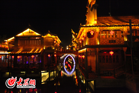 [提要] 5月16日,科學發(fā)展新山東——“魯花杯”第八屆中國網(wǎng)絡媒體山東行采訪團來到了棗莊臺兒莊古城。在記者們的眼前,夜晚的臺兒莊美輪美奐,七彩的燈光將粉墻黛瓦蒙上一層夢幻的顏色,潺潺的流水中透出一股清幽的氣息。這座被乾隆譽為“天下第一莊”的古城正展現(xiàn)出它在新時期的獨特魅力。可誰能想到,這里原來是一片破爛不堪的棚戶區(qū)。