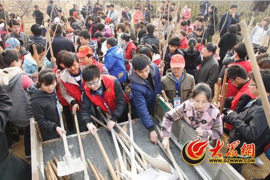 領取鐵锨開始植樹
