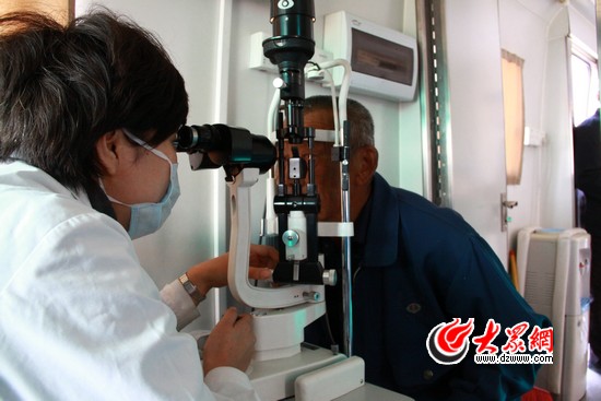 “復明四號”流動手術車剛剛停穩,村民們就圍了上來,山東施爾明眼科醫院的醫生對準備進行篩查的村民一一進行詳細登記。在流動手術車里,記者看到,雖然空間有些狹窄,但是先進的儀器一應俱全,村民們首先要經過最簡單的視力檢查,然后檢查眼底、眼壓的檢查。