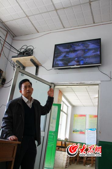在西柿子園村村委會(huì)的一面墻上,有一個(gè)大屏幕,從屏幕上可以看到村子主要干道的情況。“第一書(shū)記”張保運(yùn)說(shuō),自從有了這個(gè),村子里就能“夜不閉戶”了。記者 張帆 攝