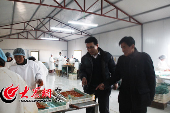 “第一書記”袁西聯(lián)在肉食加工廠了解情況。(見習(xí)記者 張璐 攝)