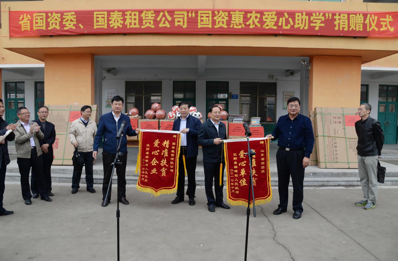 尹剛一行還實地參觀了巨野縣麒麟鎮南曹村恒業惠生農牧業發展有限公司,在麒麟鎮六營學校開展了“國資惠農 金秋助學”捐贈活動,向省國資委5個第一書記幫包村的中小學及幼兒園捐贈體育器械和圖書、玩具等,幫助改善學校體育設施和教學條件。